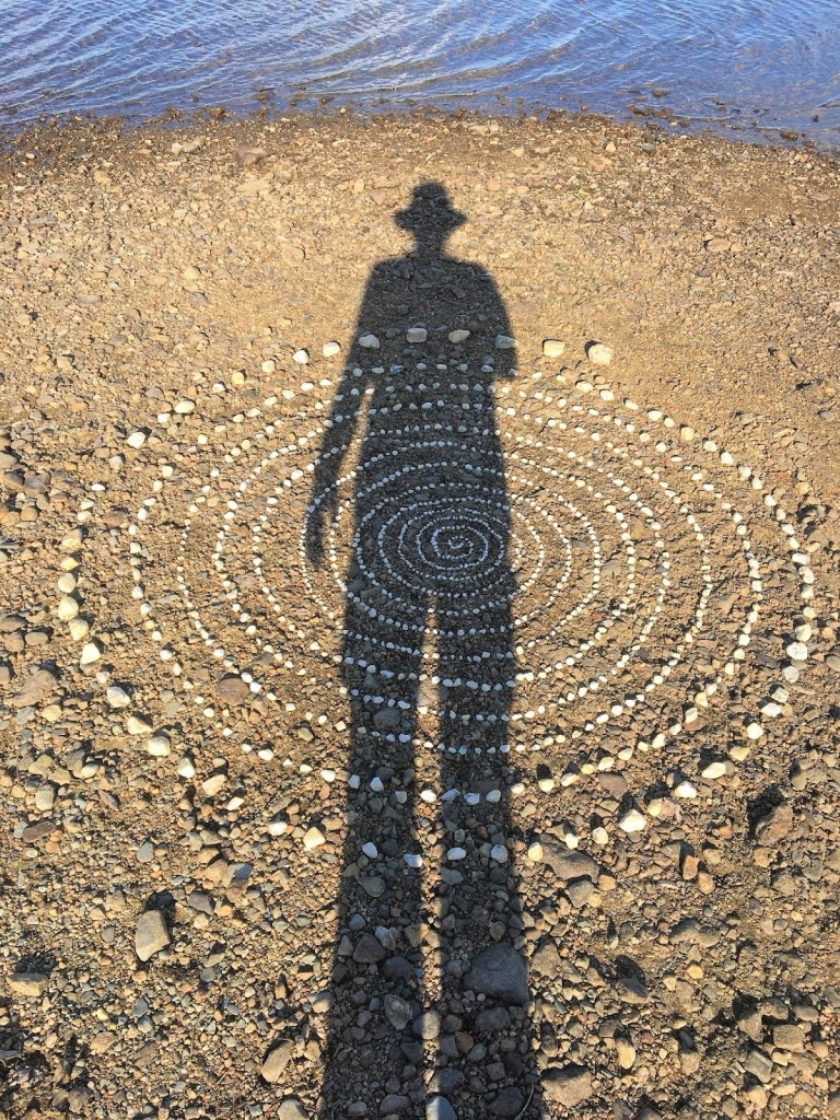 Building a miniature labyrinth, an homage to Richard Smithson and Richard Long. 974 stones. 3 hours.