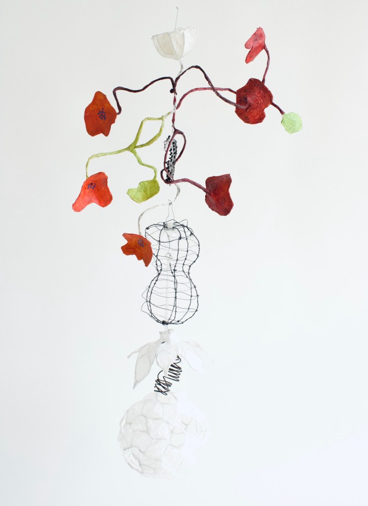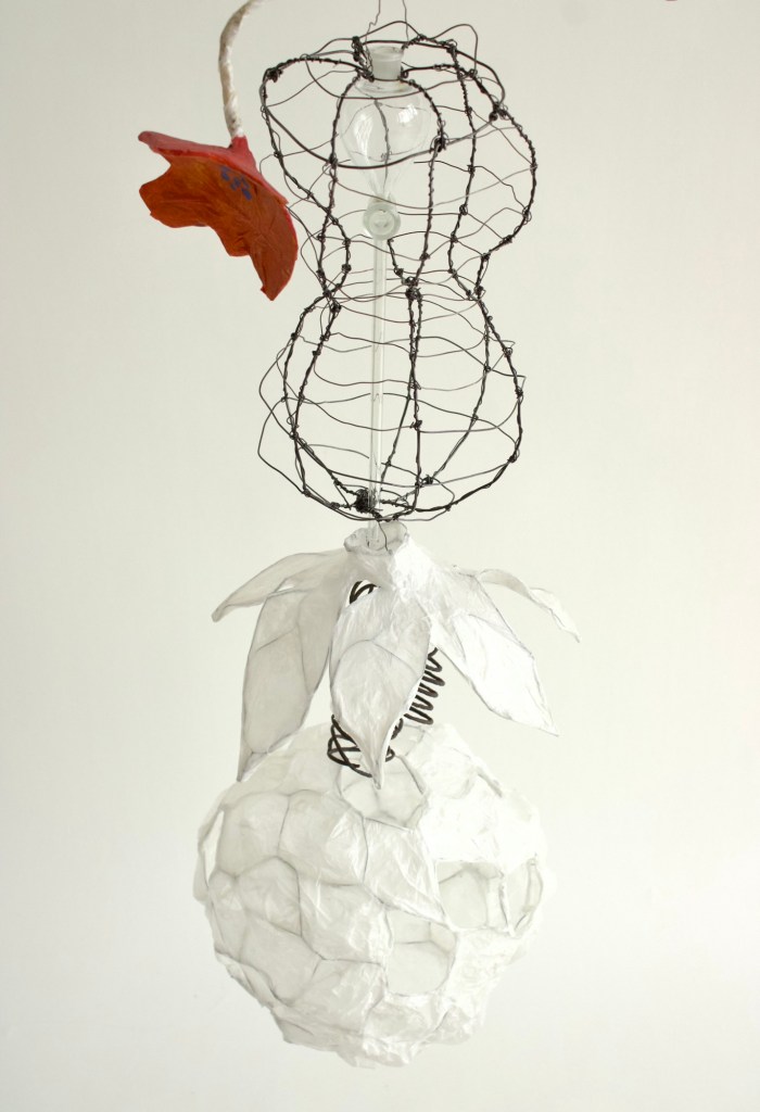 tree bark, wire, paint, paint, scientific glassware