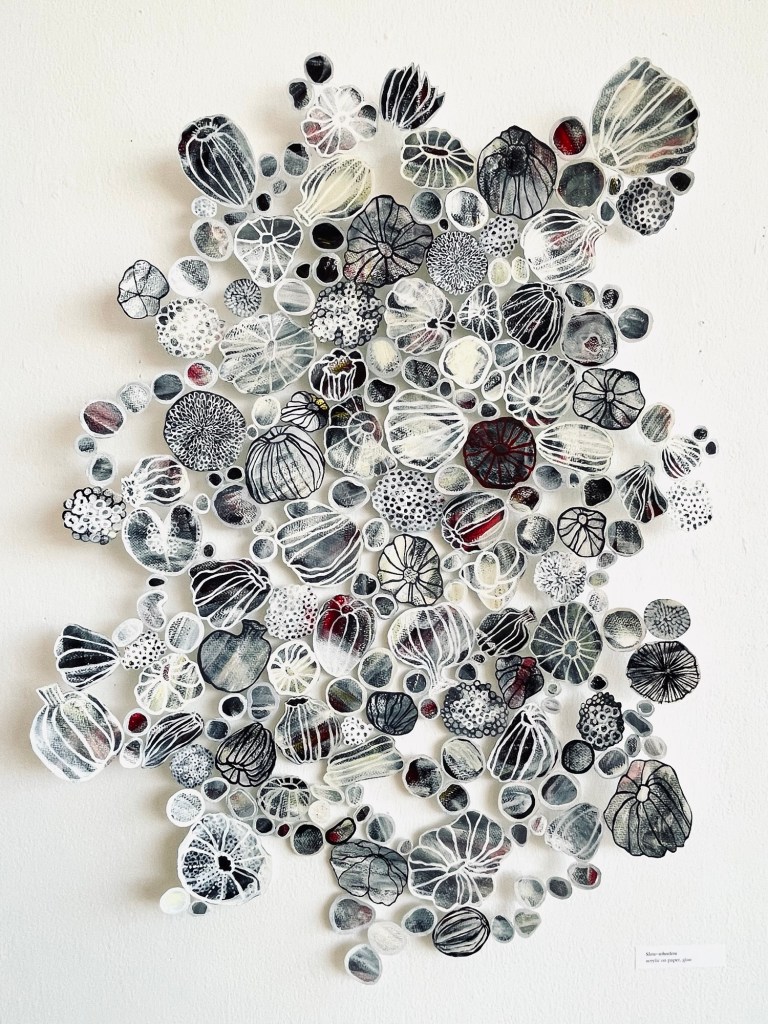 acrylic paint on paper, glue