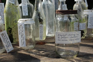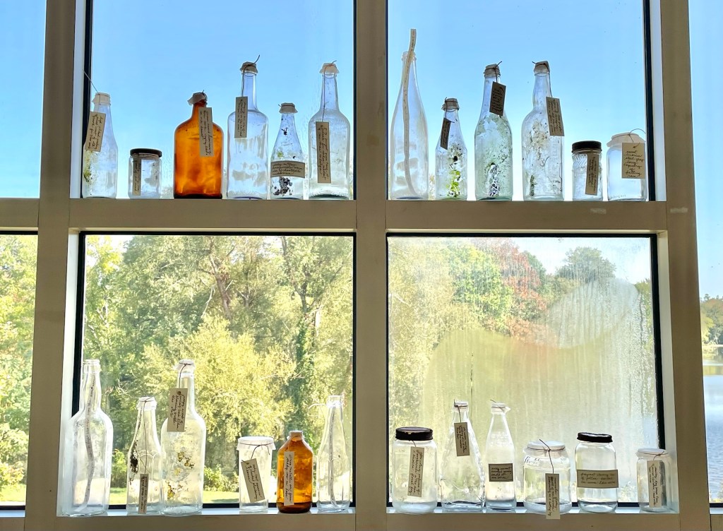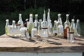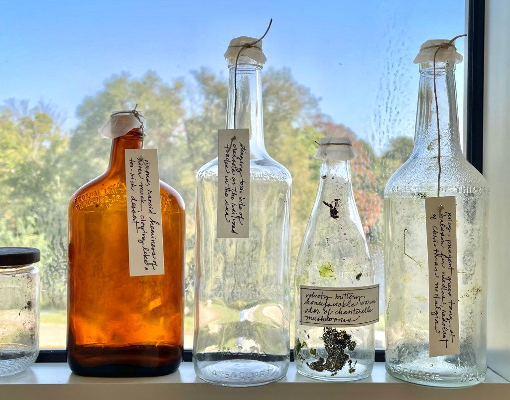 Seeking language to describe the smells of a walk along Hodgeman’s beach and through the forest in the north woods of Maine. Capturing these in bottles gathered from a hidden trash heap behind Burnt Cabin beach