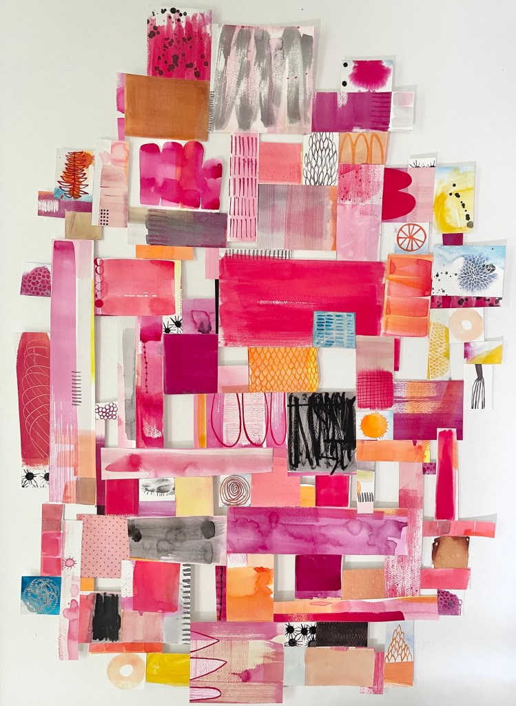 watercolor on paper, glue