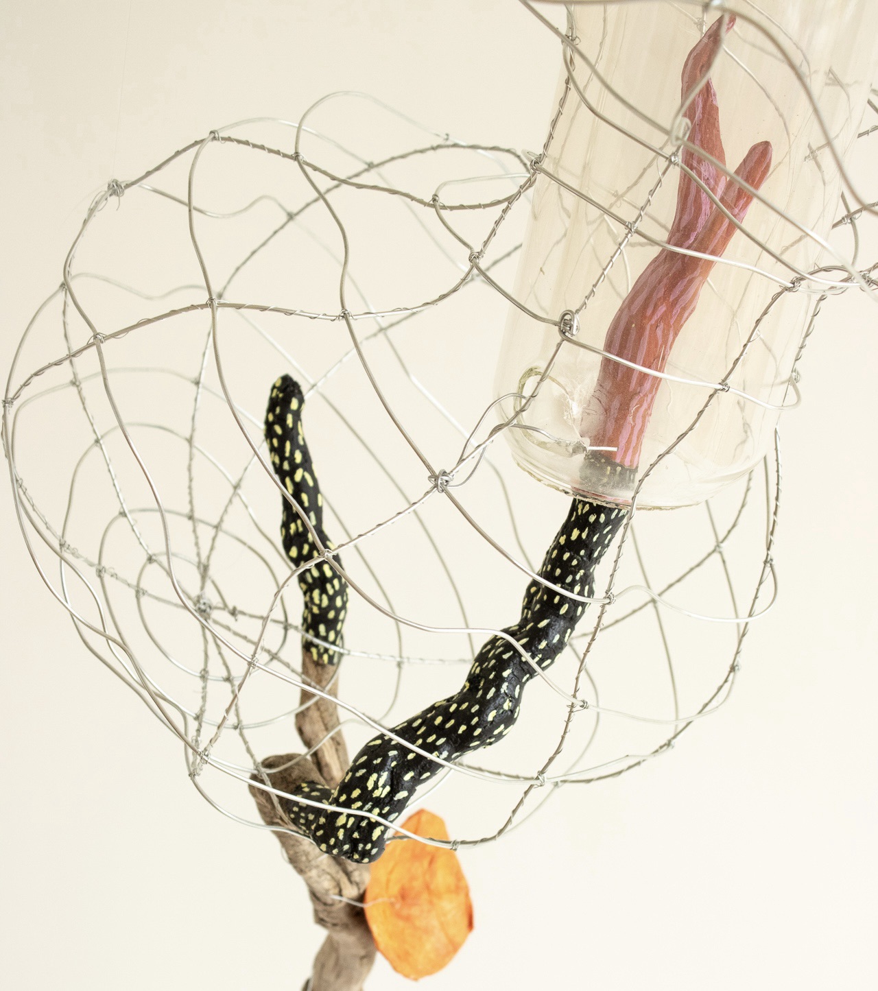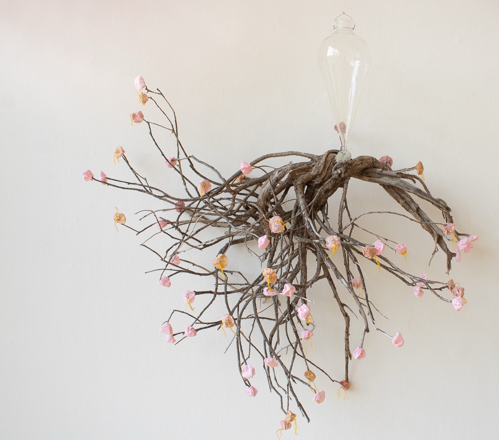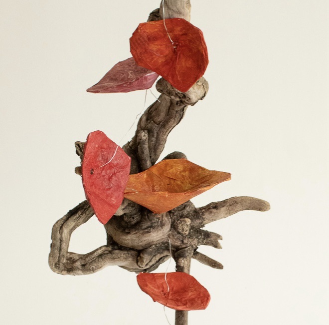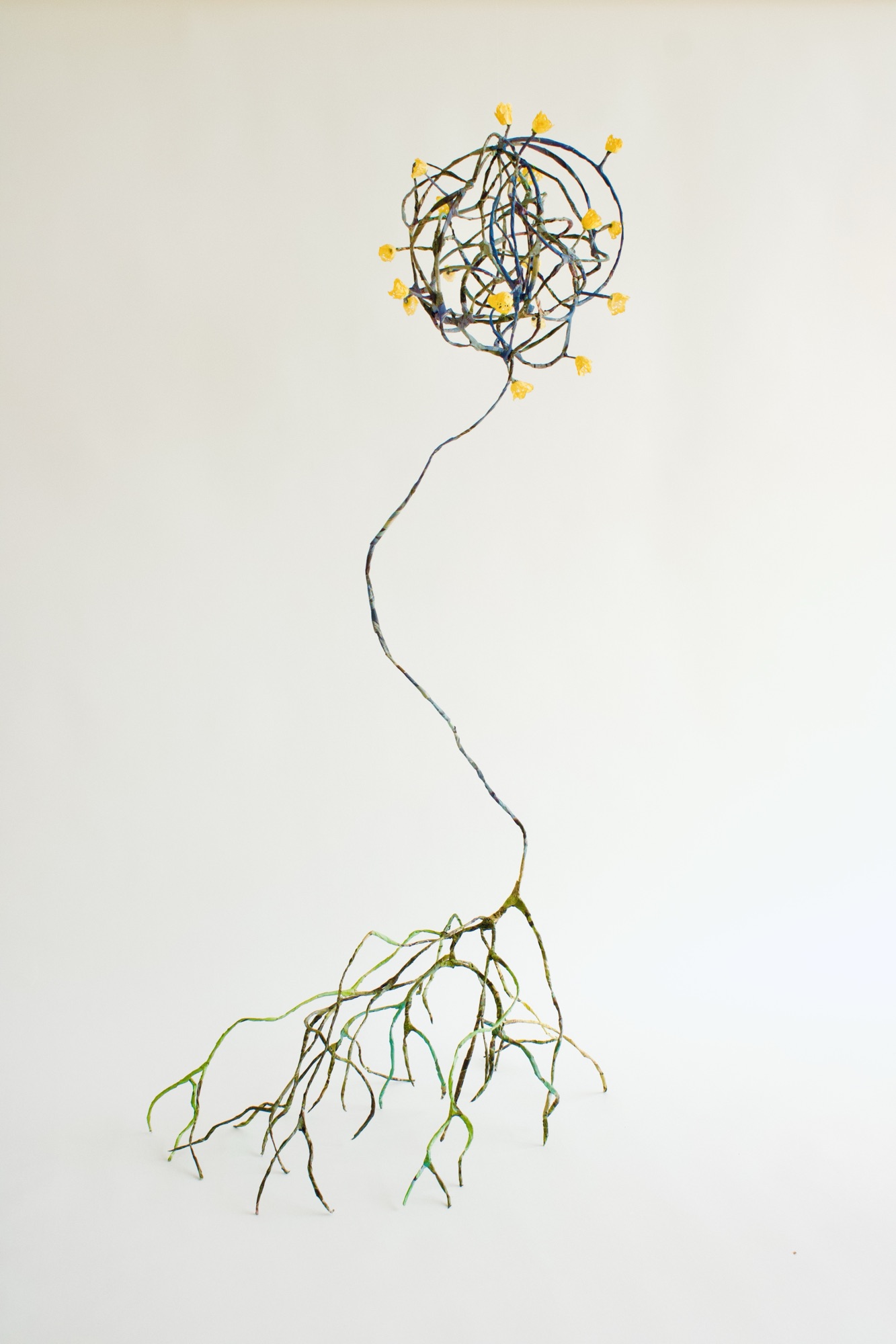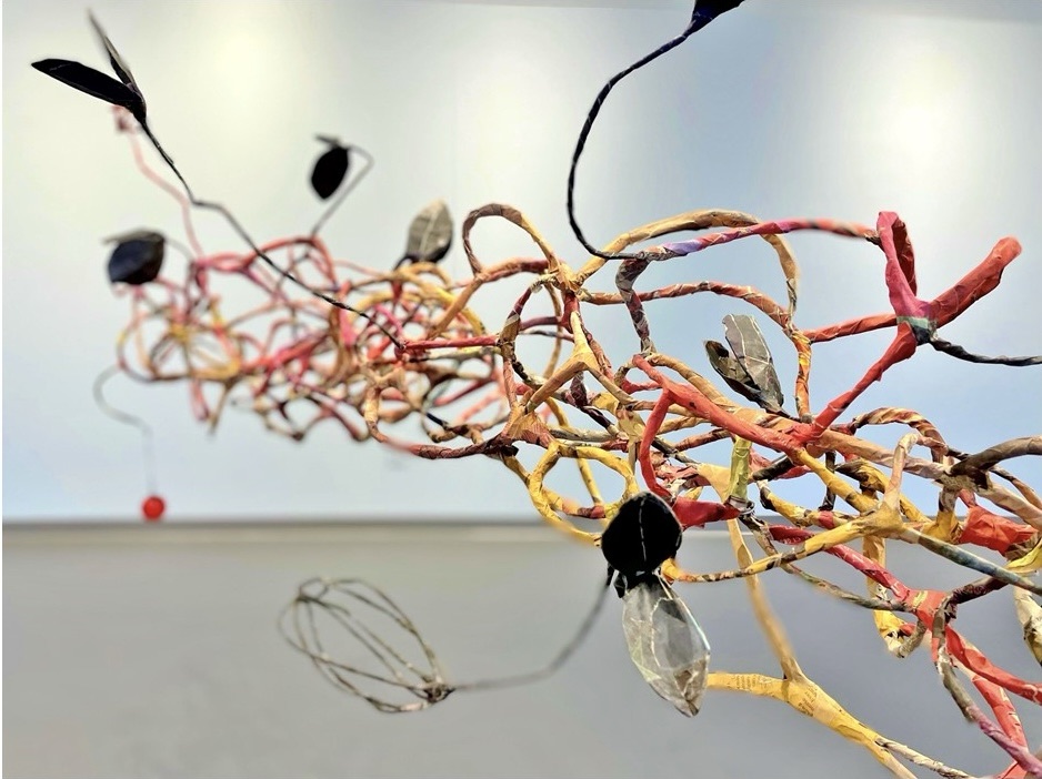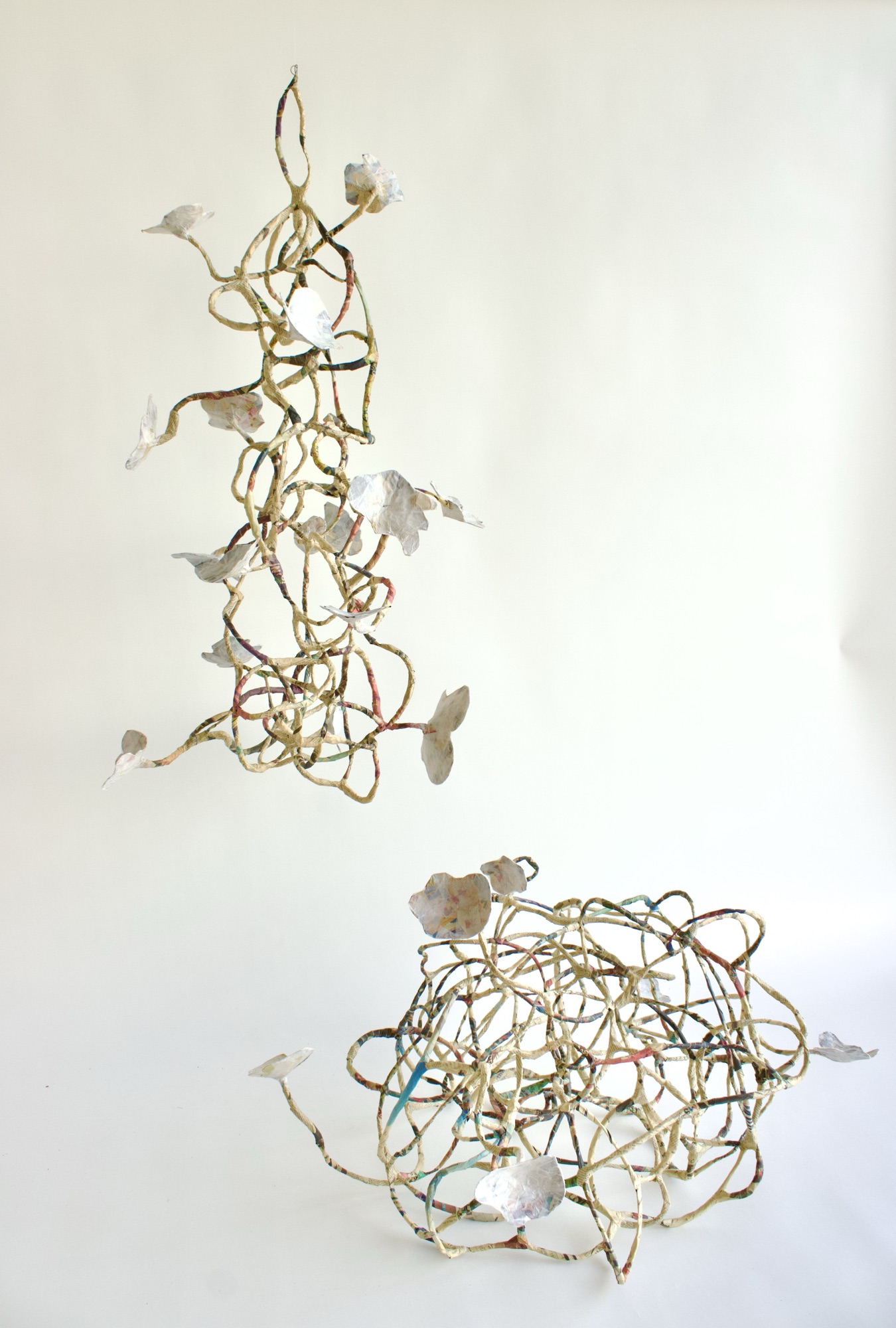 This is my most recent adventure, an exotic ecosystem, a gathering of foundlings, of hybrid creatures who borrow indiscriminately from the languages of poetry and science. They indulge my obsession with making something from nothing, my love affair with recycled newspaper, twigs, and wire… They are my antidote to the news, the embodiment of enduring hopefulness, an opportunity ‘maybe even to float a little above this difficult world.’ (Mary Oliver). When we go to sleep, I imagine that they flower and sing, and drip and dance the night away. They are having a party to which you are invited.