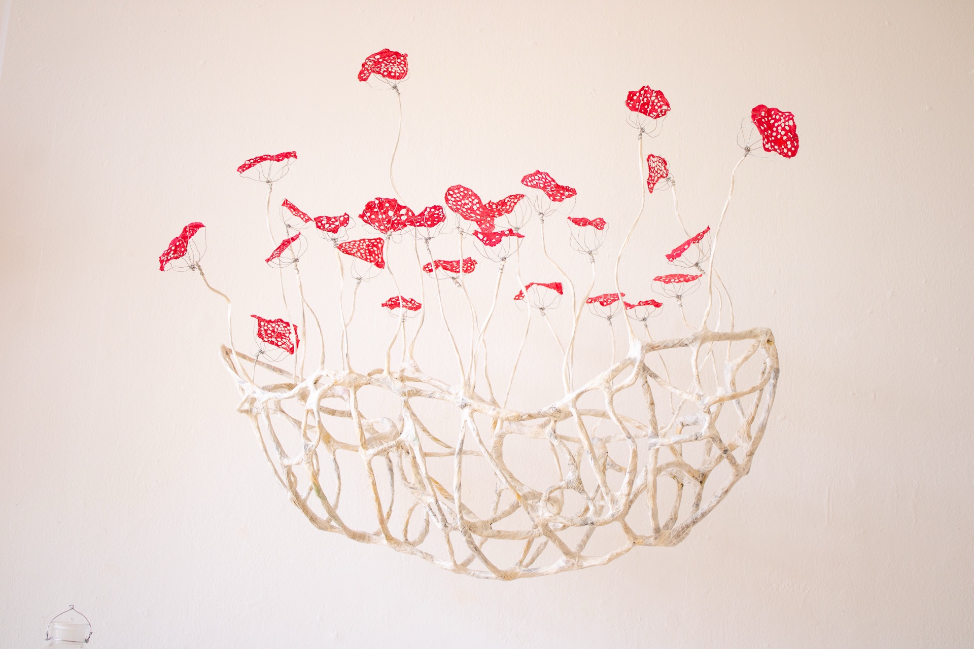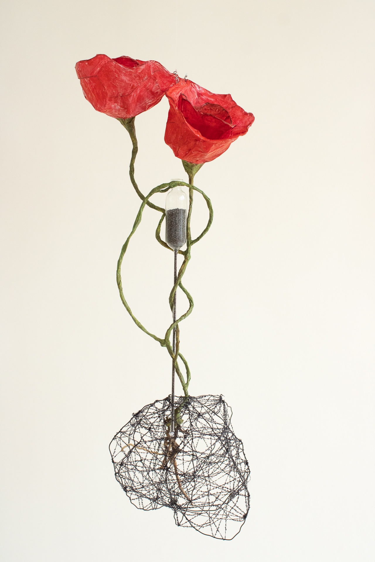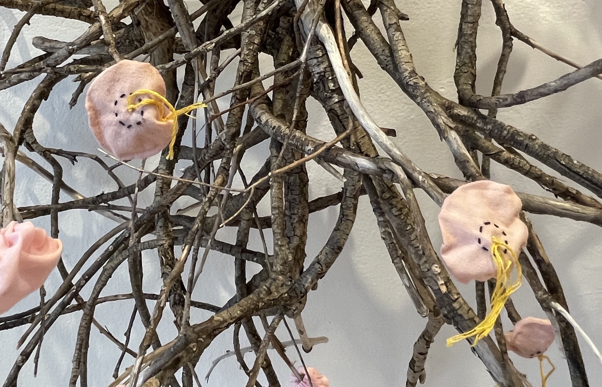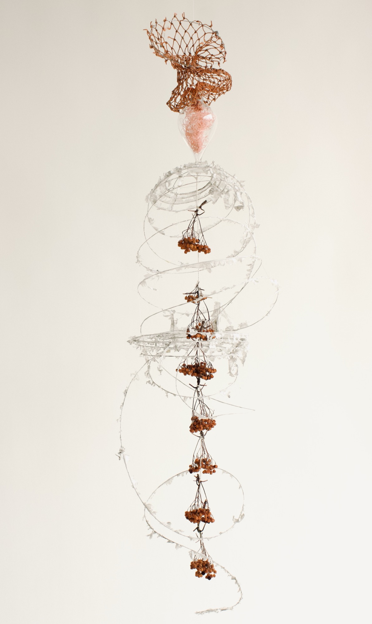 This is my most recent adventure, an exotic ecosystem, a gathering of foundlings, of hybrid creatures who borrow indiscriminately from the languages of poetry and science. They indulge my obsession with making something from nothing, my love affair with recycled newspaper, twigs, and wire… They are my antidote to the news, the embodiment of enduring hopefulness, an opportunity ‘maybe even to float a little above this difficult world.’ (Mary Oliver). When we go to sleep, I imagine that they flower and sing, and drip and dance the night away. They are having a party to which you are invited.
